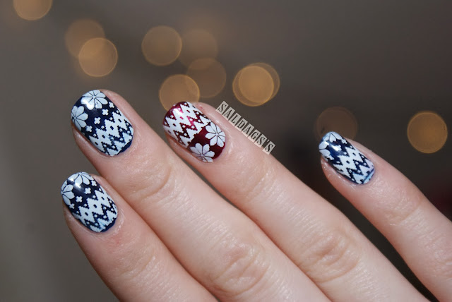 No anyways, päätin tehdä toisetkin neulekynnet, tälläkertaa ne saa olla talvineuleet vähemmän jouluisen värityksen puolesta :)