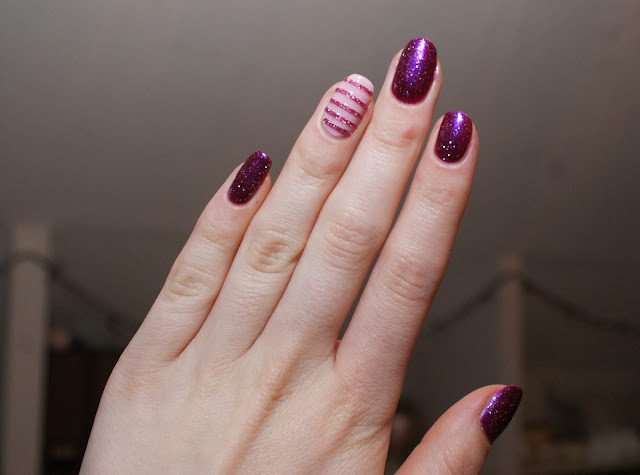 Tänään tein synttäreideni kunniaksi glitteröverikynnet ! En yleensä käytä juuri ollenkaan liilaa/violettia, mutta kun sain violetin glitterlakan ja striping tapea kaveriltani synttärilahjaksi niin pitihän niitä kokeilla :) Nämä ovat kyllä juhlavan näköiset !