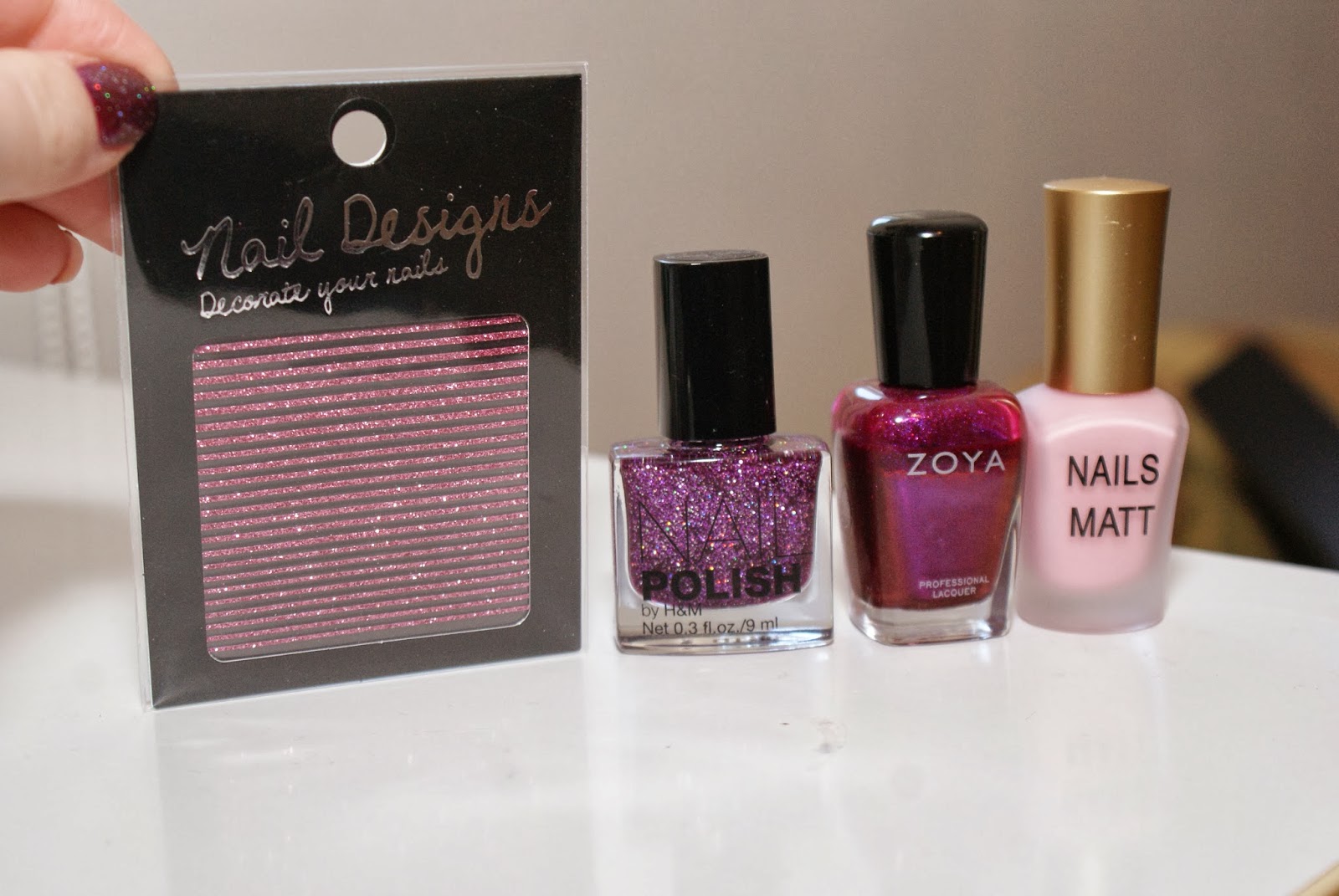Koristeluteippi/tarrat H&M, Look Sharp-H&M, Zoya-Mason, Seppälä Nails-Day Dream |