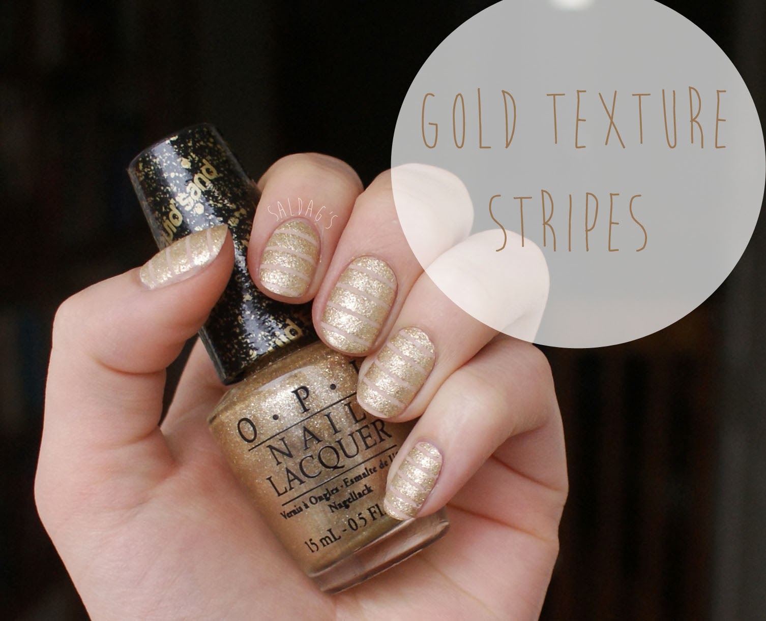 Teki mieli käyttää lempparitekstuurilakkaani, OPIn Honey Ryderia. Se on ihana vaalea kylmänkultainen jossa on aika hienojakoinen tekstuuri. Ei siis läheskään yhtä rouhea kuin eilinen essien Belugaria :D
