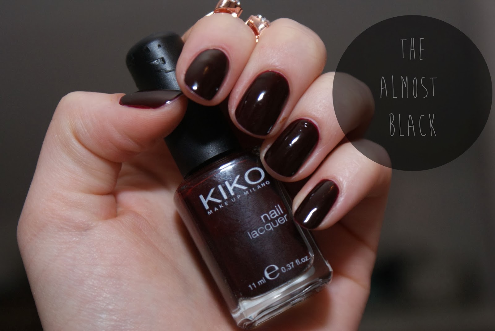 Melkein mustat, mutta sitten kuitenkin lähemmällä tarkastelulla ruskeat/punaiset/siniset kynsilakat ovat mieleeni. Tummanpuhuvat ja kiiltävät kynnet näyttävät jotenkin vaan coolilta :D Lemppari melkein musta burgundyn/punaruskean värinen lakkani on Kikon sävy nro 226. Peittää yhdellä kerroksella, mutta kahdella lopputulos on ihanan kiiltävä. Näissä tosi tummissa väreissä saa olla tosi tarkka levityksen kanssa. Kynsinauhoille levitessään lopputulos onkin sitten kaukana siitä siististä.