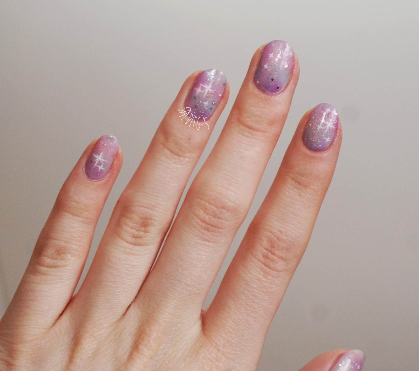 Käyttämäni lakat:b.pretty-Cyanblue, China Glaze-Kinetic Candy, KIKO-339, Viva la Divan hologrammiglitter, H&M-Skyscraper, H&Mn vaaleanpunainen hologlitter, omasekoittama lila, Inglot-951, Seppälä Nails- Day Dream, b.pretty-absolutely nude |