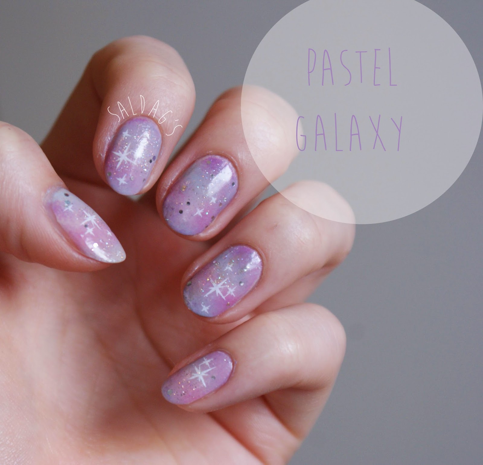 Kaivoin kaikki pastelliväriset kynsilakkani esille koska ajattelin tehdä pääsiäiskynnet. Mieleeni tuli kuitenkin joskus jossain internetin uumenissa nähneeni kuva pastellivärisistä galaksikynsistä, jotka olivat tosi söpöt! Päätin yrittää tehdä oman versioni niistä ja näistä tuli aika suloiset My Little Pony-kynnet :)