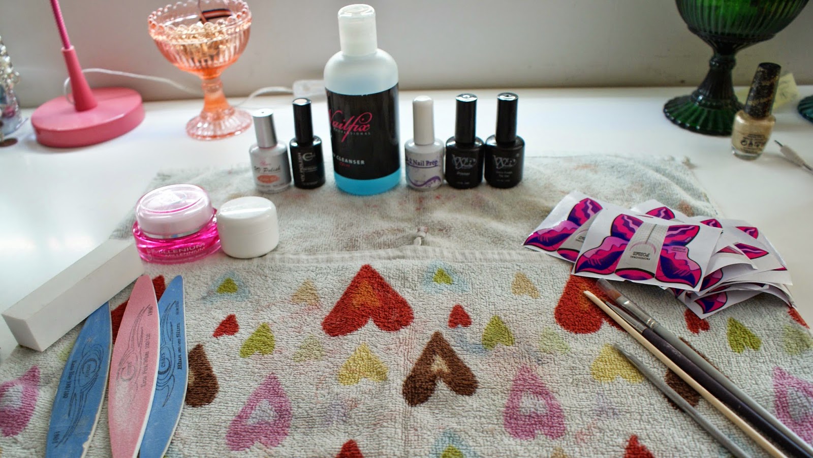 Puhdistusaineena mulla on tällä hetkellä Nailfixin, ja muotit Cesarsin perhosmuotteja. Perhoset on mun ehdottomat suosikit, ne saa hyvin paikalleen ja ne myös pysyy paikalla.